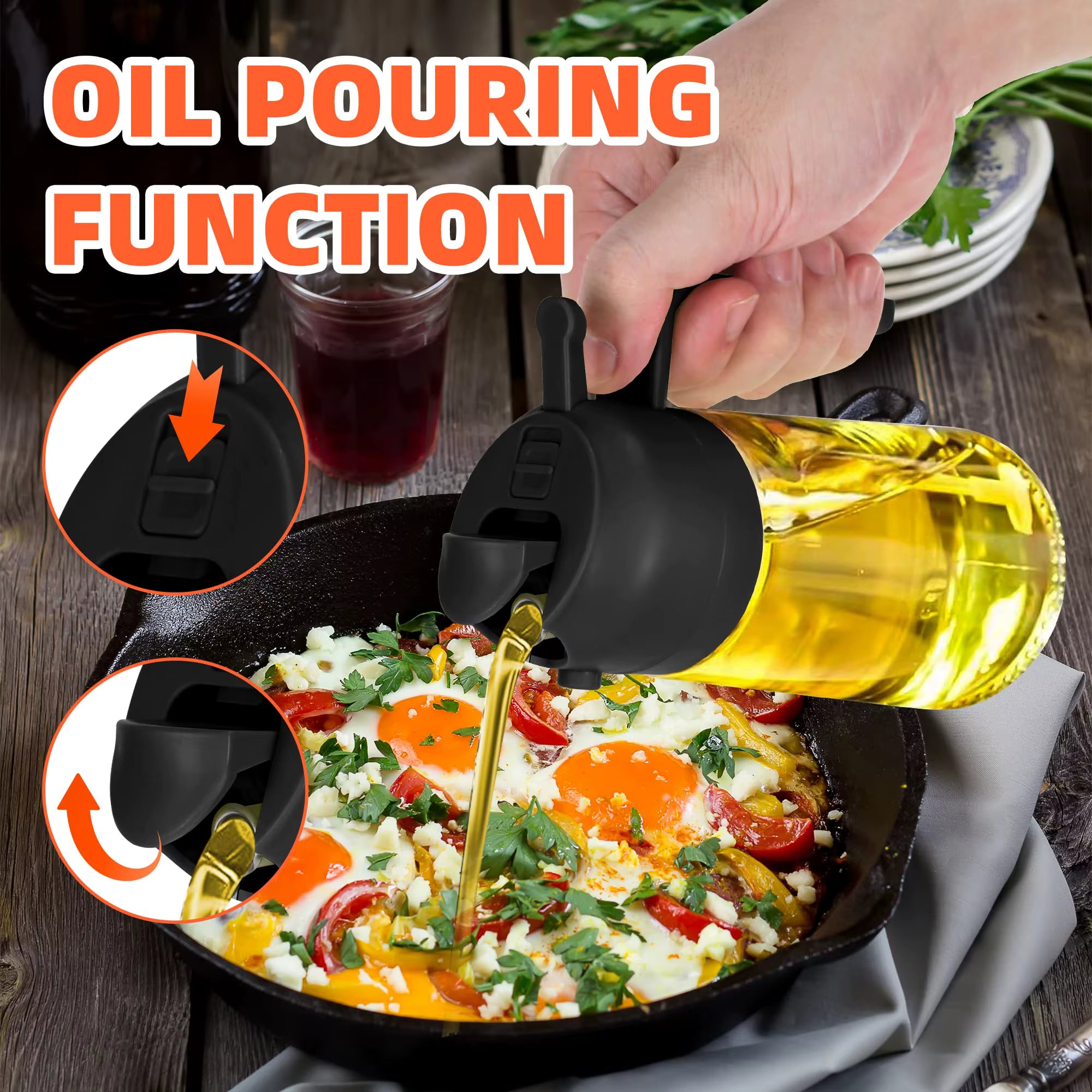 - 2-in-1 Design: Combines an oil sprayer and dispenser in one smart bottle — perfect for air fryer, frying, salad dressing, grilling, and baking.